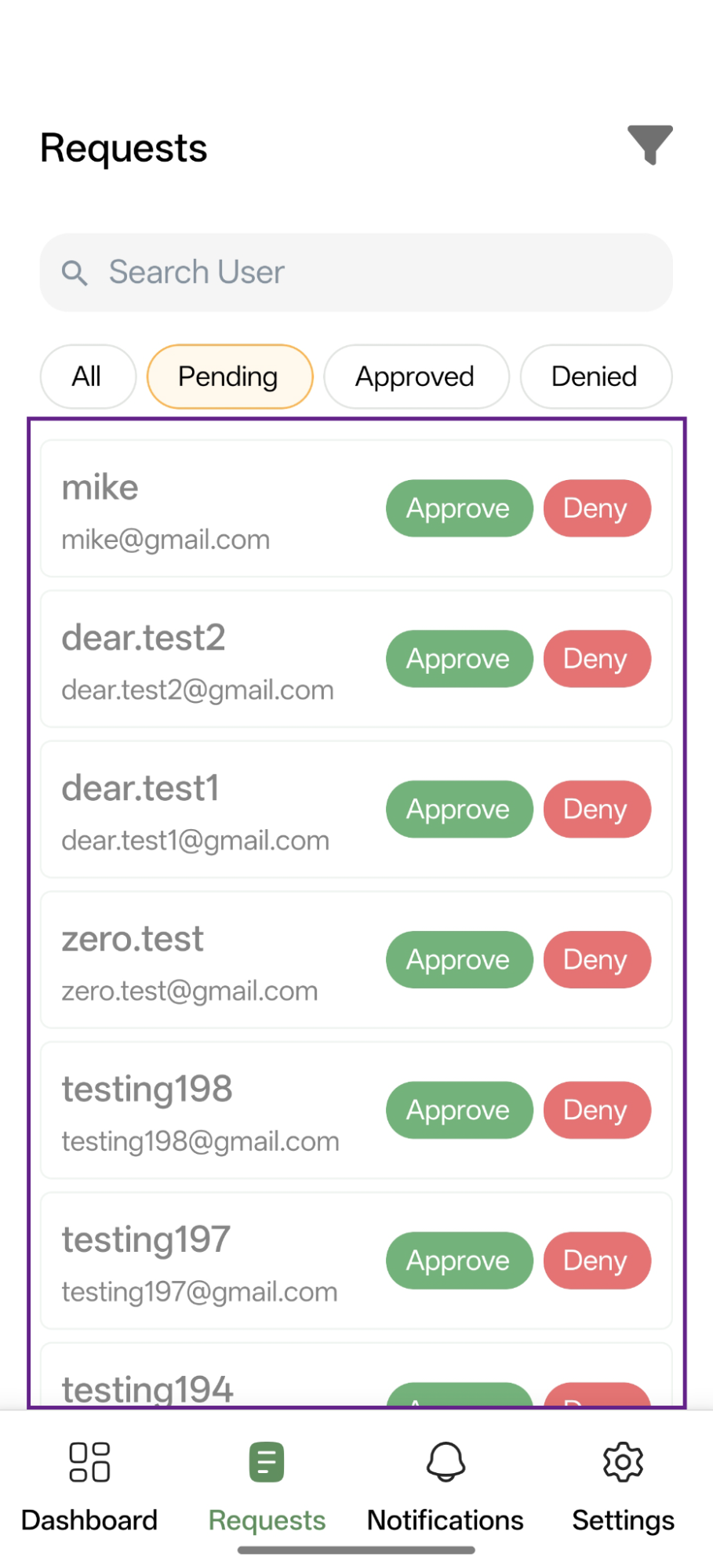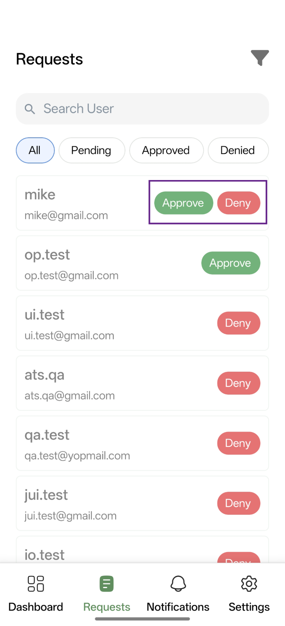 - Approved users can also be denied access by clicking the deny icon, even if their request was initially approved.
