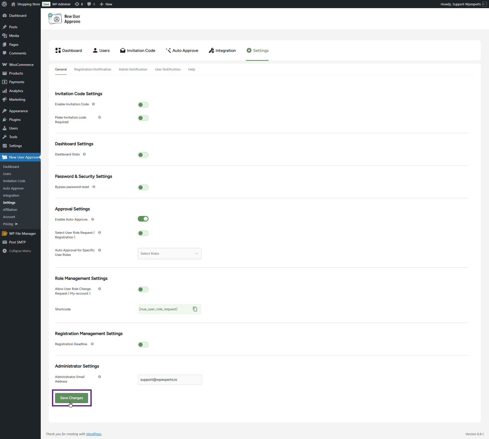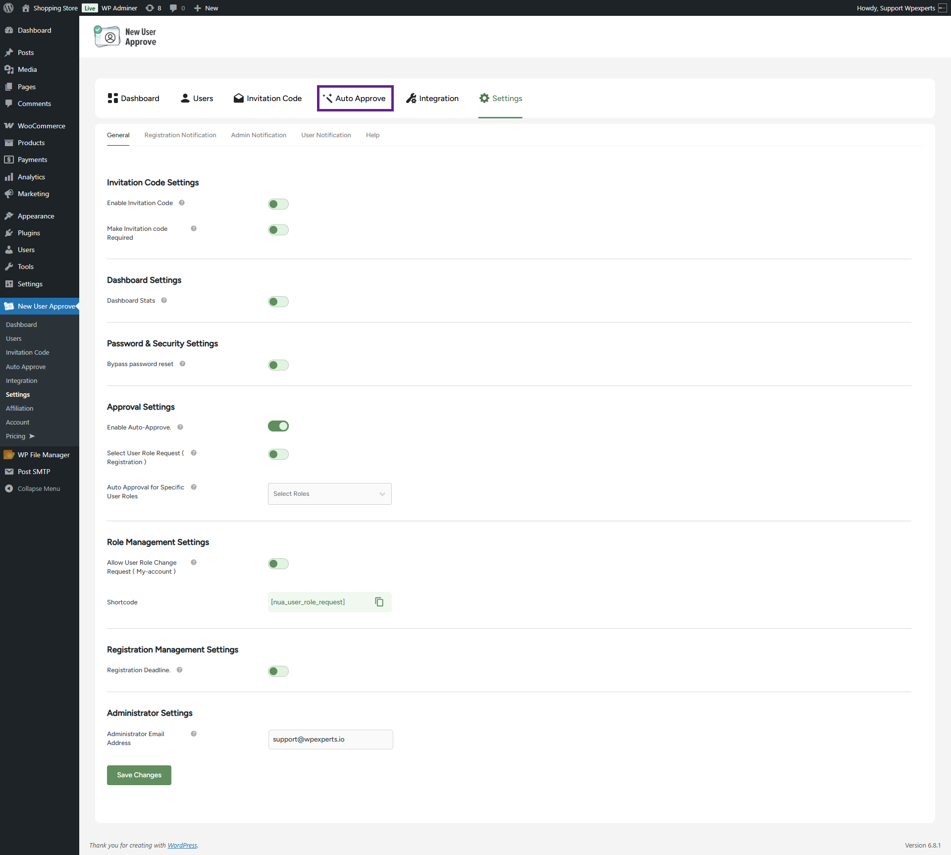 - Go to the Admin Dashboard > New User Approve > Settings.