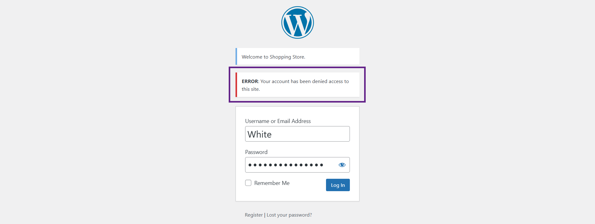 - If the user’s request is denied and they attempt to log in, the denied error message will be displayed.