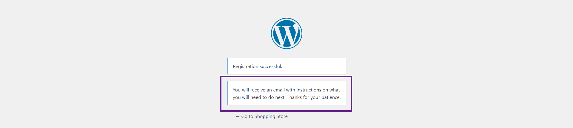- The Registration Complete Message is shown to the user after they have successfully registered on the site.